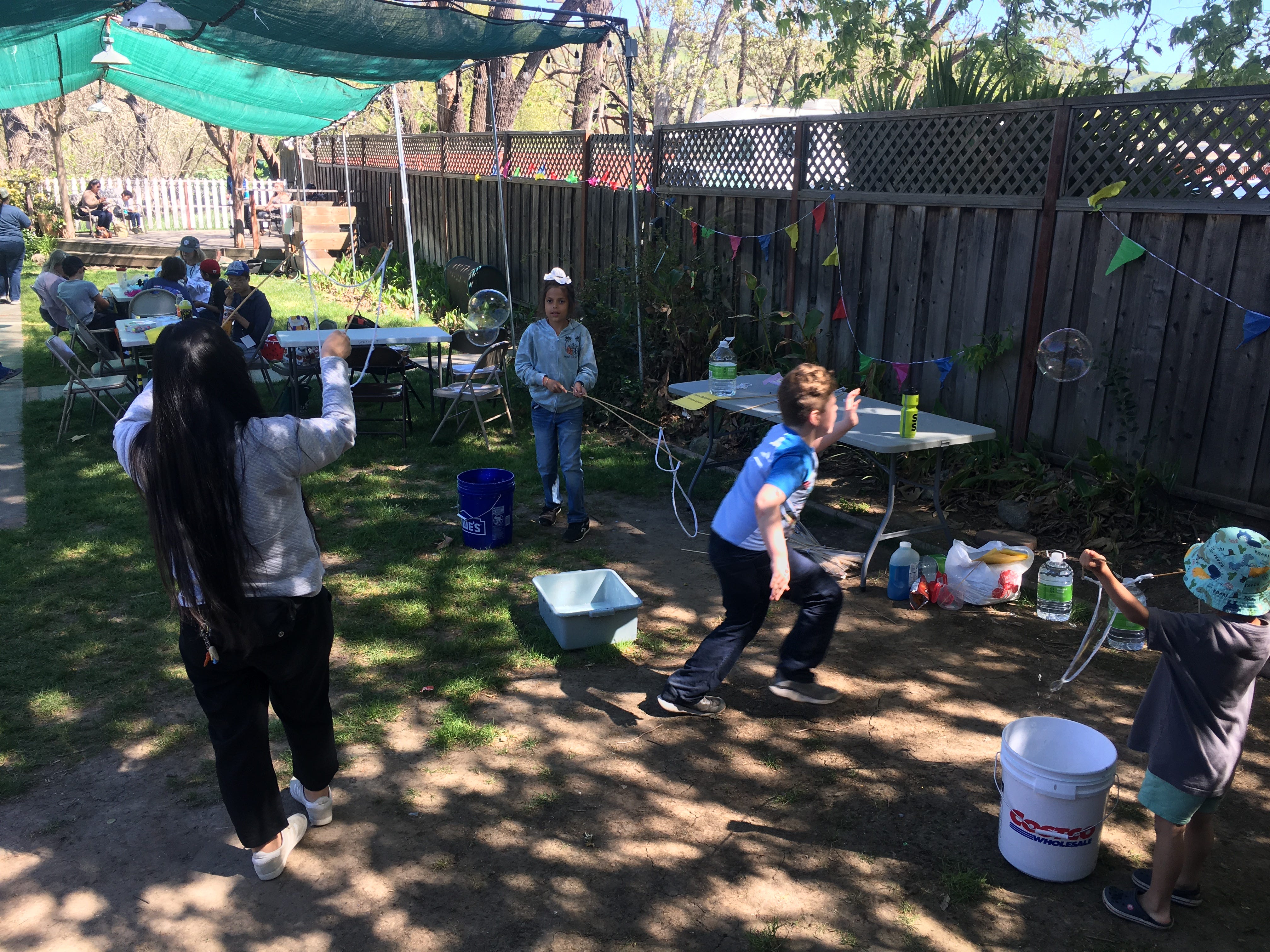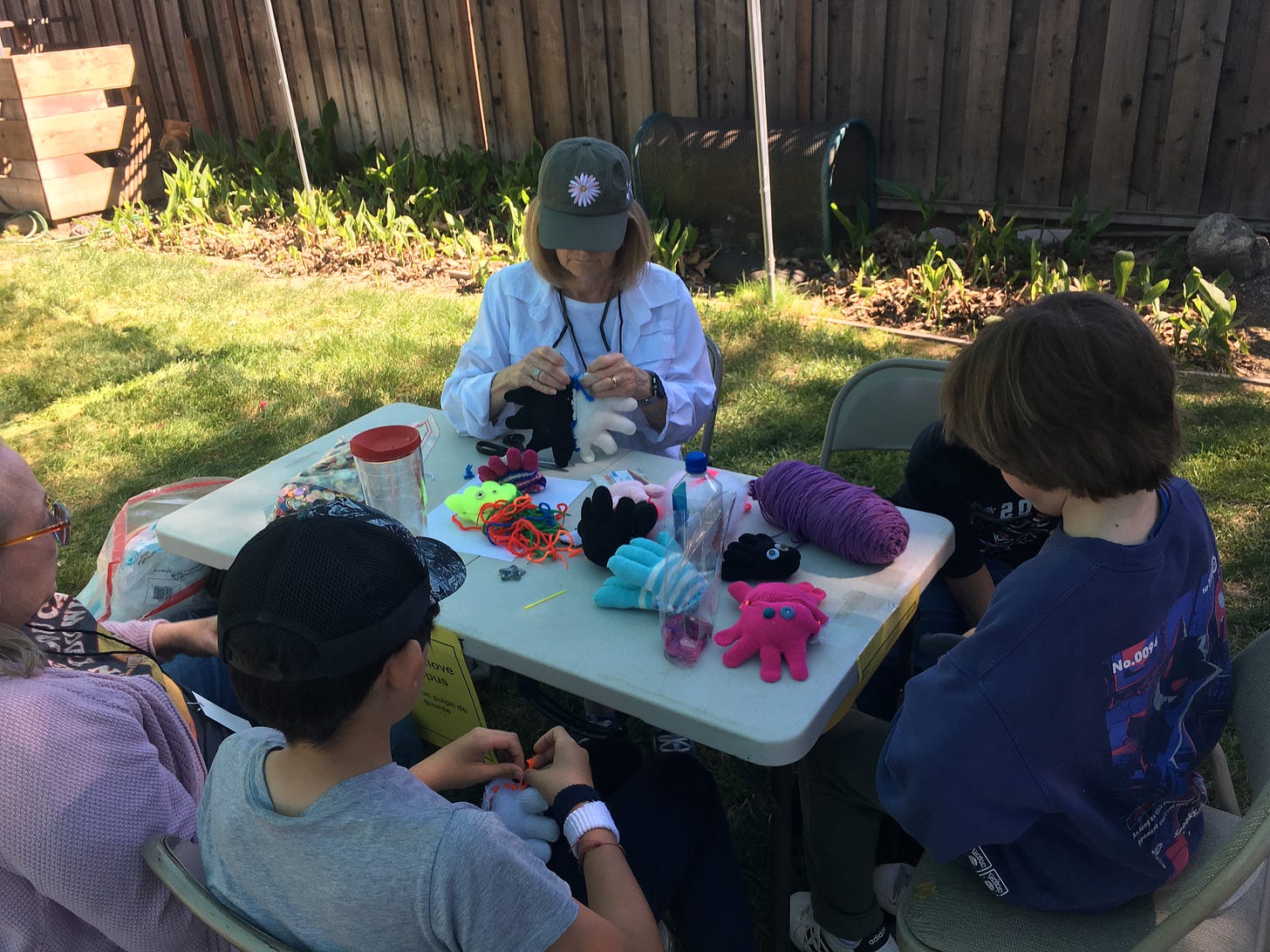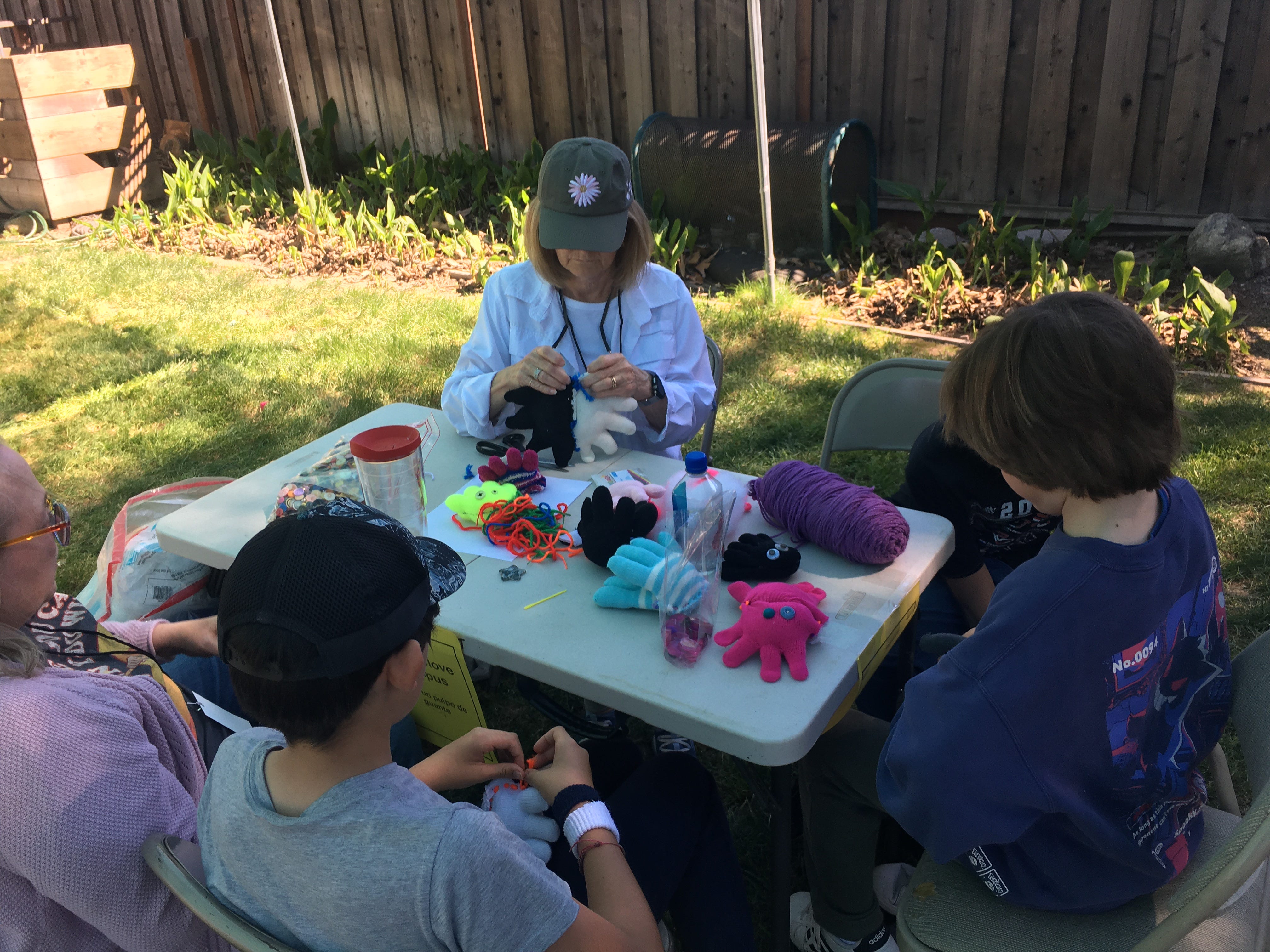We made Glove Octopi, Paper Rocket Launching, Fold-A-Book projects, Perler Bead Pixel Art, and Giant Bubbles.