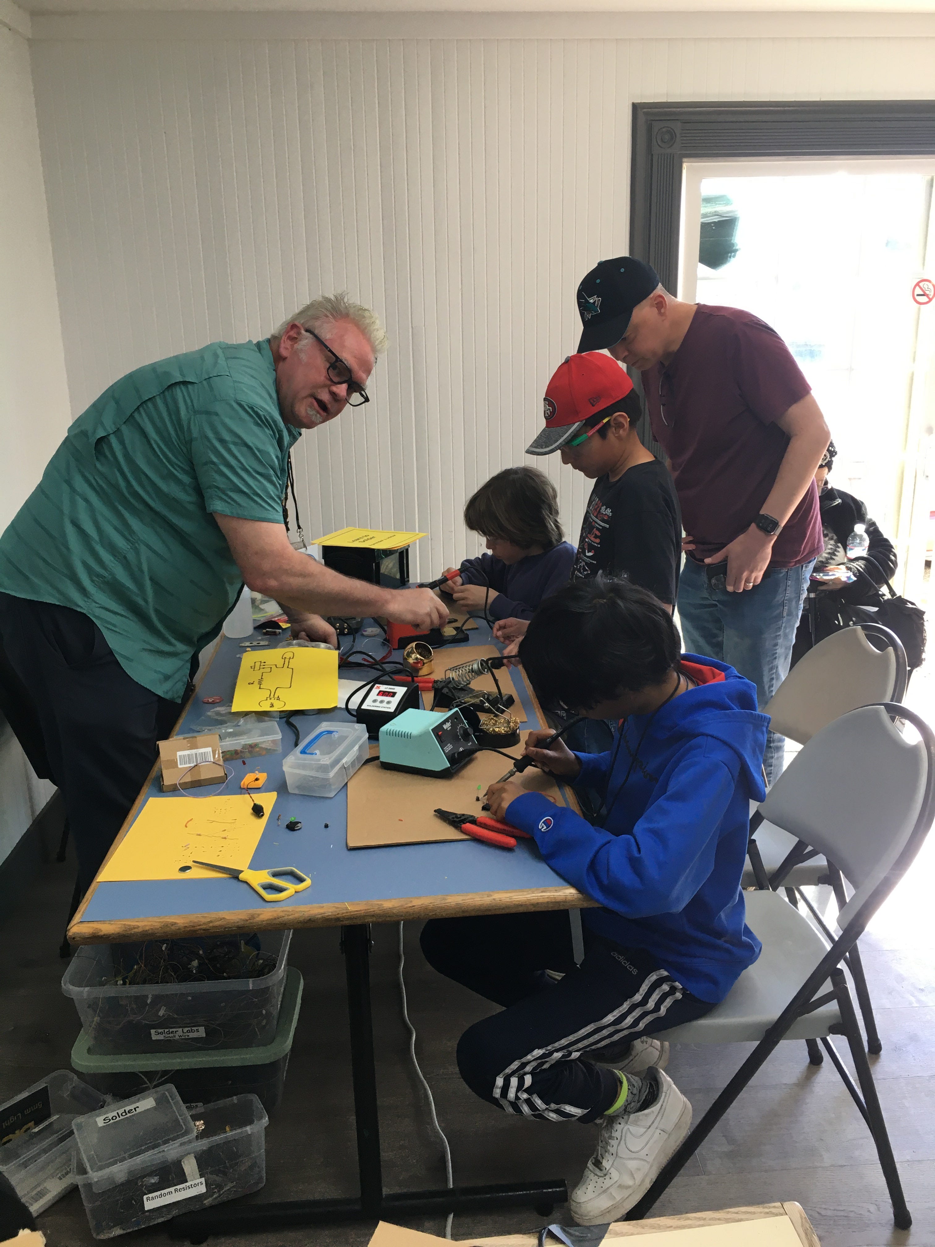We had a “Learn to Solder” booth with Makey soldering badges.