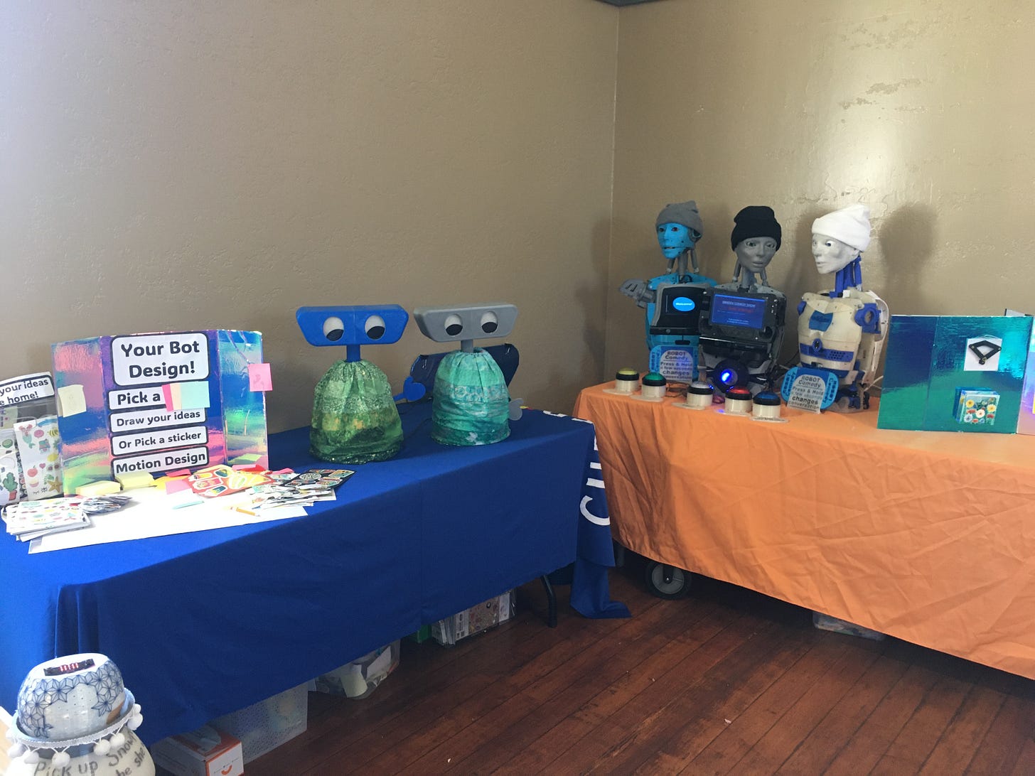 Damaris Davis brought her 3D printed robot comedy team and Katherine Donaldson brought her Robot Choir, both of which have been exhibited at the Bay Area Maker Faire.